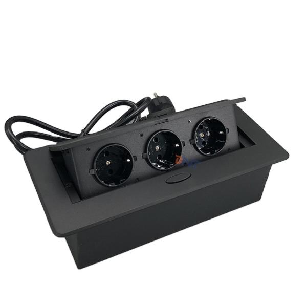 BD613EU popup socket is designed as a desktop power socket with muti-functional configuration, it is hidden into the table mounted. when use the socket,just to press the control button,the socket panel will 45 degree pop up form the desktop for use, Once it is unuse, press the panel to the desk to close.Then the panel of the socket will be flush with the desktop.